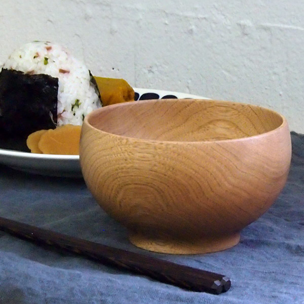 私たちに親しみがある6つの樹種を使って、職人さんが丁寧にろくろ木挽きで形づくっています。天然素材を使用しているため、ひとつひとつの木目、色合い、風合いが異なり、年月とともに深い色味へと変化していくさまをお楽しみいただけます。やさしい丸みのある素朴なお椀は1996年にグッドデザイン賞を受賞しており、毎日のお味噌汁はもちろんのこと、スープやシチュー、サラダやフルーツボウルとして使っても。食事をたのしむひと時を心地よい時間へと紡いでいきます。