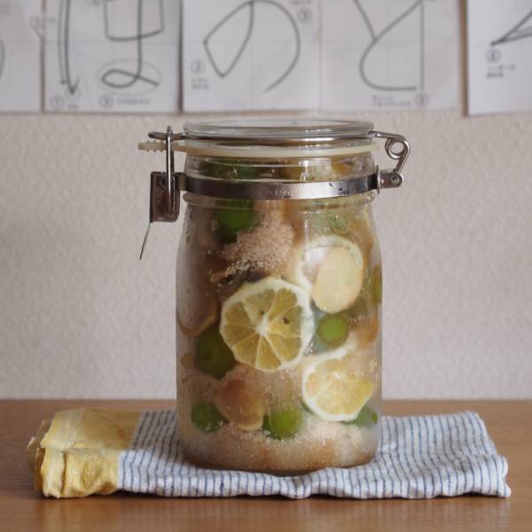 今年の梅仕事はいつもの梅シロップからスタート。私の梅シロップは生姜スライスとレモンスライスも入れて、レモンジンジャー梅シロップにしています。個人的な感想ですが、梅だけのシロップよりも梅のとんがった感じが取れて、少しまろやかになるような気がします。このシロップのお陰で夏バテ知らずです。