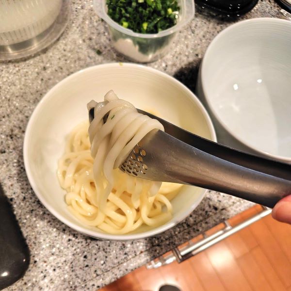 もう20年近く使っているこちら。最初は「柳宗理デザイン」に憧れて購入しましたが、今ではキッチンで手放せない道具のひとつです。 便利さを実感するのが麺類の調理。うどんやパスタなどの滑りやすい麺もしっかり掴めるので、つるっとした瞬間にお湯が飛んでアチッとなるストレスなく盛り付けできます。穴あき仕様なので麺や茹でた野菜をさっと水切りできるのもポイント。毎日の調理で「ちょっとした不便」を感じていた方に、丈夫でお手入れも楽々なこのトング、おすすめです。
