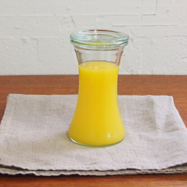 ウェックのガラスジャーはいろいろなタイプを愛用していて、中でもお気に入りがデリカテッセン。180mlと330mlどちらも使っていますが、活躍度が高いのはだんぜん180mlです。ちょうどよい飲みきりサイズですし、穴開きの木のふたをつけると一気にカフェ風のおしゃれさに。キッズが集まるホームパーティーにもよいですよ。