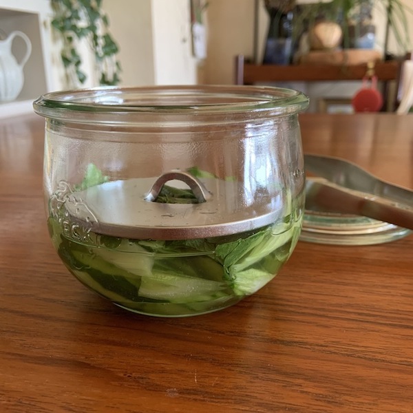 これまで浅漬けはジップロックで揉み揉みしながら作っていましたが、それだとジップロックを洗ったり器に移したりが手間だし、なんだか野菜がふんにゃり・・・そんな時、出会った浅漬け板。洗いやすく、食材が引っかかったりしないデザインもさすがです。均一に圧がかかっているから野菜の水分が程よく抜けて食感もパリッパリ。使うのが億劫になるほどの重量感ではなく、浅漬けを美味しく作るギリギリの重さなところも◎。WECKのチューリップシェイプ500mlにぴったりです。