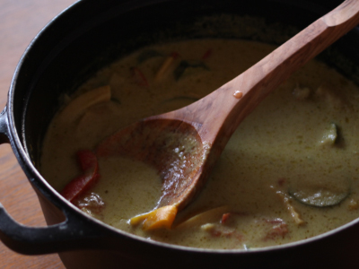 ハイジに出てきそうな木のお玉。カレーなど色がつくものも大丈夫と聞いていてもどうかな?と思っていたのですが、早速チャレンジ。結果、全く色移りはなし!! さすがオリーブの木です。オイルでお手入れしながら大切に使おうと思います。