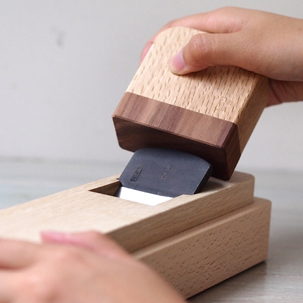 山谷製作所は大工道具の「鉋(かんな)」の台をつくるメーカーとして1946年に創業しました。もともとは鰹節削り用の刃の部分を生産していましたが、和食がユネスコ無形文化遺産に登録されたのをきっかけに和食に貢献するべく、現代のライフスタイルに溶け込む美しいデザインで鰹節削り器を生産するようになりました。ウォルナットとブナを素材とした継目のないつるりとした箱は、鉋台生産者ならではの見事な削り出し製法。長く使え、直すことも可能です。台屋では試し削りをして出荷されているので、お手元に届いてすぐに美味しい鰹節が削れる心遣いも嬉しいですね。