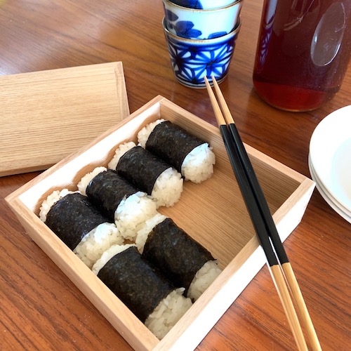 お休みの日はみんな起床時間がバラバラ。本当なら一緒に朝食を食べるのが理想だけど、お休みの日くらいはね。ということで休日の朝ごはんはお重におかずを詰めるビュッフェスタイルに。おにぎりやサンドイッチ、昨晩の残り物など飾り気のないおかずもお重に詰めるだけで「手をかけた」感が生まれるから、我が家ではハレの日より普段使いに出番が多しです。三角おにぎりは小さめにしないと蓋がしまらないので、お重に詰めるときは俵型。サンドイッチも気持ちミニサイズにしています。