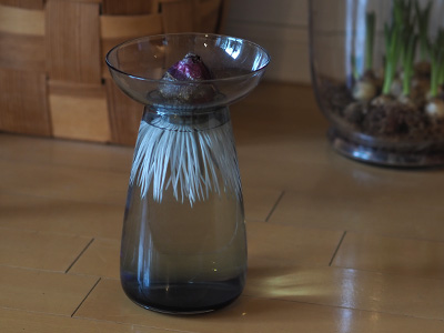 挑戦したいと思いつつなかなか始められなかった水耕栽培、遅ればせながらはじめてチャレンジ中です。冷蔵庫で1ヶ月ほど寝かせたヒヤシンスの球根を満を辞してアクアカルチャーベースに。根っこはメキメキ成長中ですが、芽が出てこない…いいのでしょか? 後ろにみえるムスカリたちの芽はグングン伸びてます…