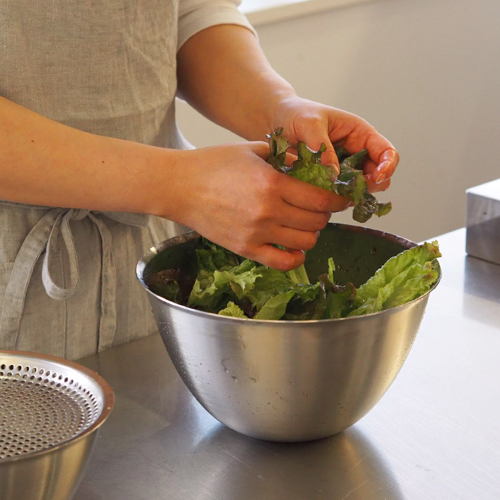 ステンレス製のボウルは油汚れもスッキリ落とせ衛生的。